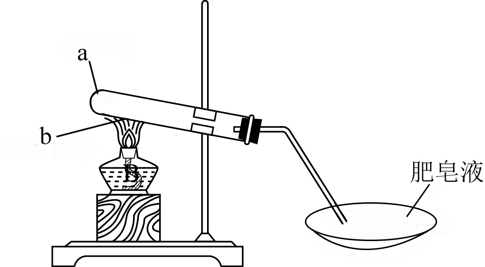 实验时,加热$\rm b$处。湿棉花在 $\rm ($填“$\rm a$”或“$\rm b$”$\rm )$处更合理。