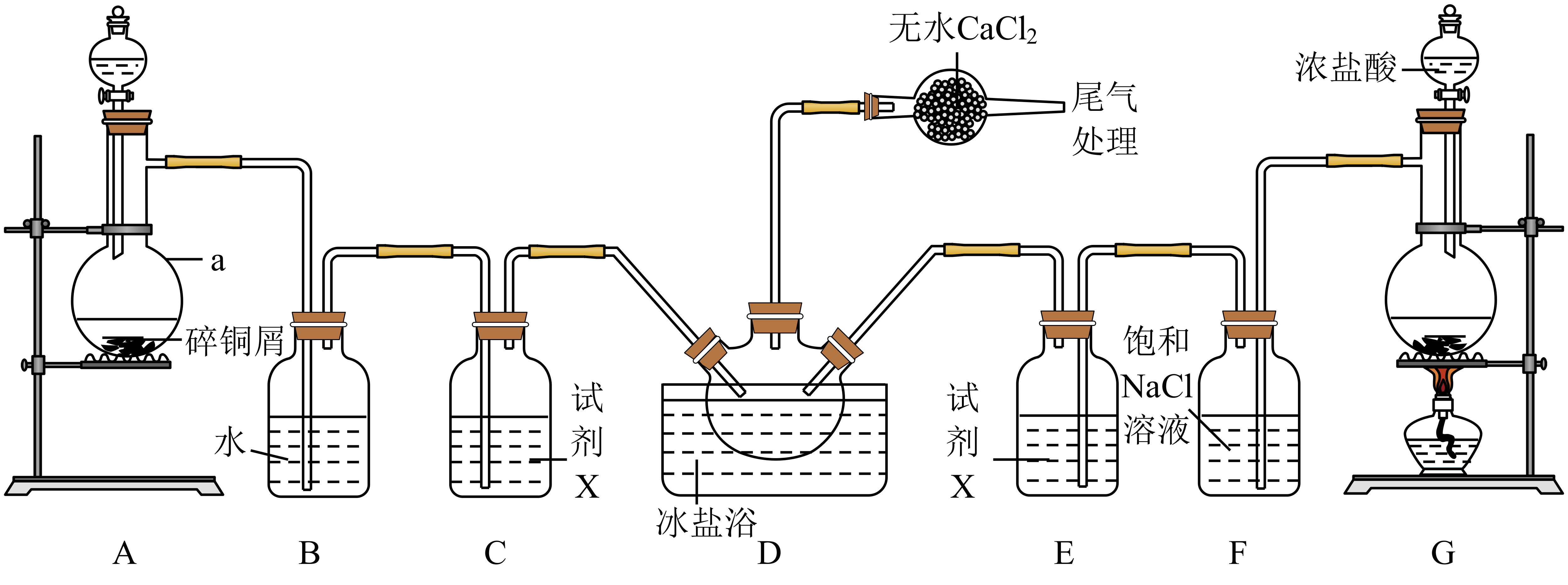 试剂$\rm X$为 ,结合$\text{NOCl}$的性质,推测$\rm D$中使用冰盐浴而不用冰水浴的原因是 。