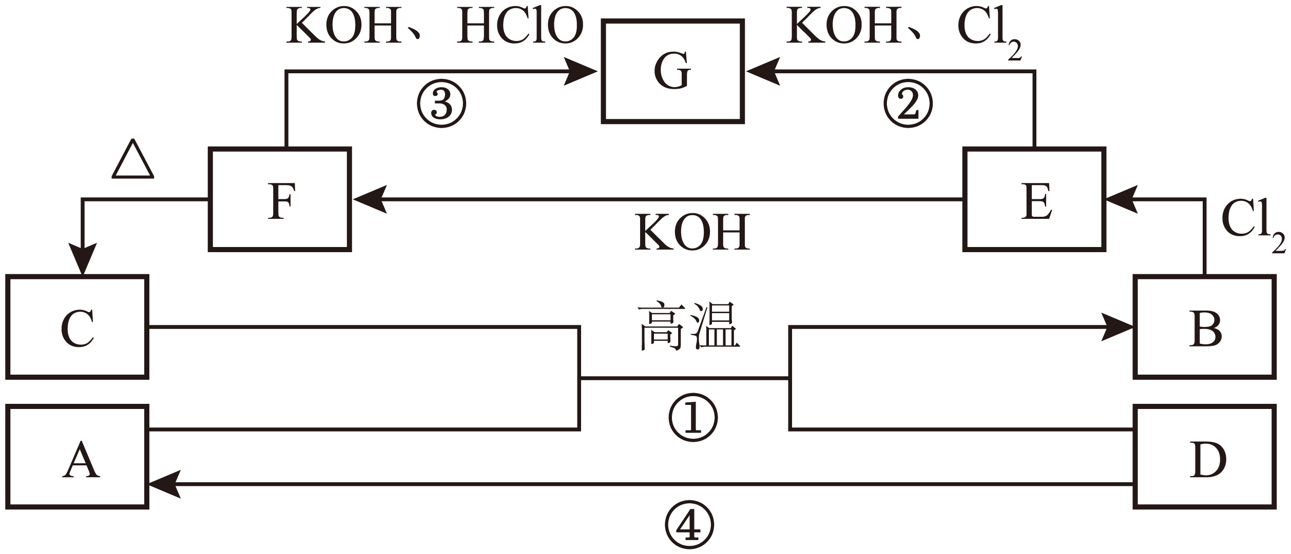 $\rm A$、$\rm B$为生活中常见的金属单质,$\rm C$、$\rm D$、$\rm E$、$\rm F$、$\rm G$为化合物,$\rm \text{G}({{\text{K}}_{2}}\text{Fe}{{\text{O}}_{4}})$是一种集杀菌消毒和吸附絮凝为一体的新型水处理剂。$\rm A\sim G$的转化关系如下图所示: