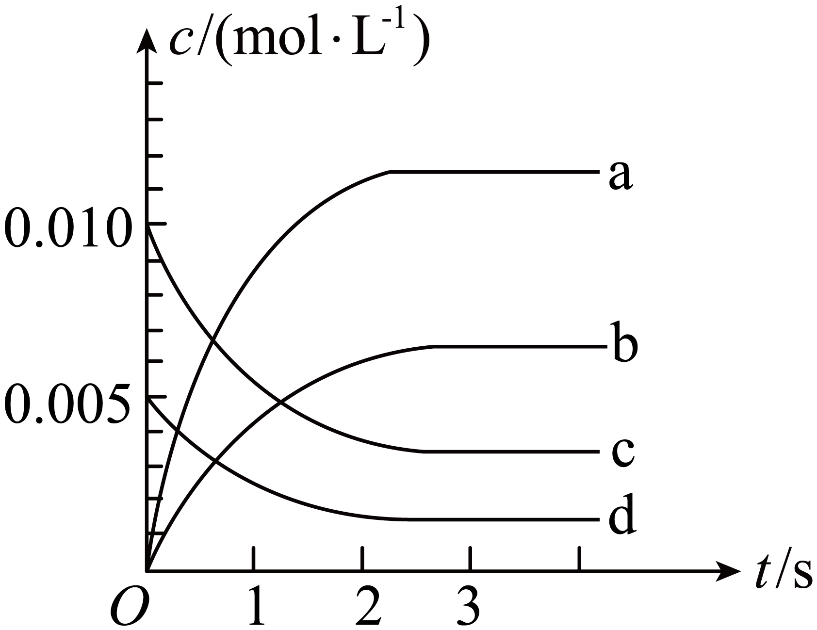 "]]$\rm \text{0}\sim2\;s$内$v\text{(NO)=}\dfrac{0.020-0.008}{\text{2}\times \text{2}}\;\text{mol}\cdot {{\text{L}}^{-1}}\cdot {{\text{s}}^{-1}}\text{=3}\text{.0}\times \text{1}{{\text{0}}^{-3}}\;\text{mol}\cdot {{\text{L}}^{-1}}\cdot {{\text{s}}^{-1}}$,根据化学反应速率之比等于化学计量数之比,用${{\text{O}}_{\text{2}}}$表示从$\rm \text{0}\sim 2\;s$内该反应的平均速率为$v\text{(}{{\text{O}}_{2}}\text{)=}\dfrac{1}{2}v\text{(NO)=1}\text{.5}\times \text{1}{{\text{0}}^{-3}}\;\text{mol}\cdot {{\text{L}}^{-1}}\cdot {{\text{s}}^{-1}}$