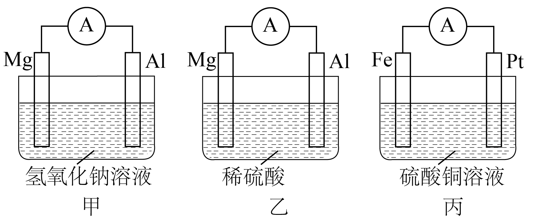 "]]甲装置中,$\rm Mg$与$\rm NaOH$不反应,$\rm Al$与$\rm NaOH$反应,因此$\rm Al$作负极,$\rm Al$失去电子发生氧化反应生成偏铝酸钠,电极反应式为$\rm {Al-3}{{{e}}^{-}}{+4O}{{{H}}^{-}}{=AlO}_{{2}}^{-}{+2}{{{H}}_{{2}}}{O}$;