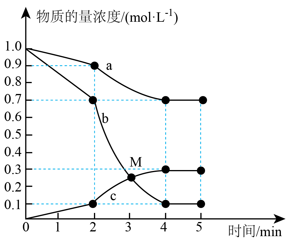 ①$\rm \mathrm{H}_{2}(\mathrm{g})$的浓度随时间变化曲线为 $\rm ($填“$\rm a$”、“$\rm b$”或“$\rm c$”$\rm )$;在$\rm M$点,${{ {v}}_{\text{(正)}}}$ $v_{(逆)} ($填“$\rm \gt $”、“$\rm =$”或“$\rm \lt $”$\rm )$。