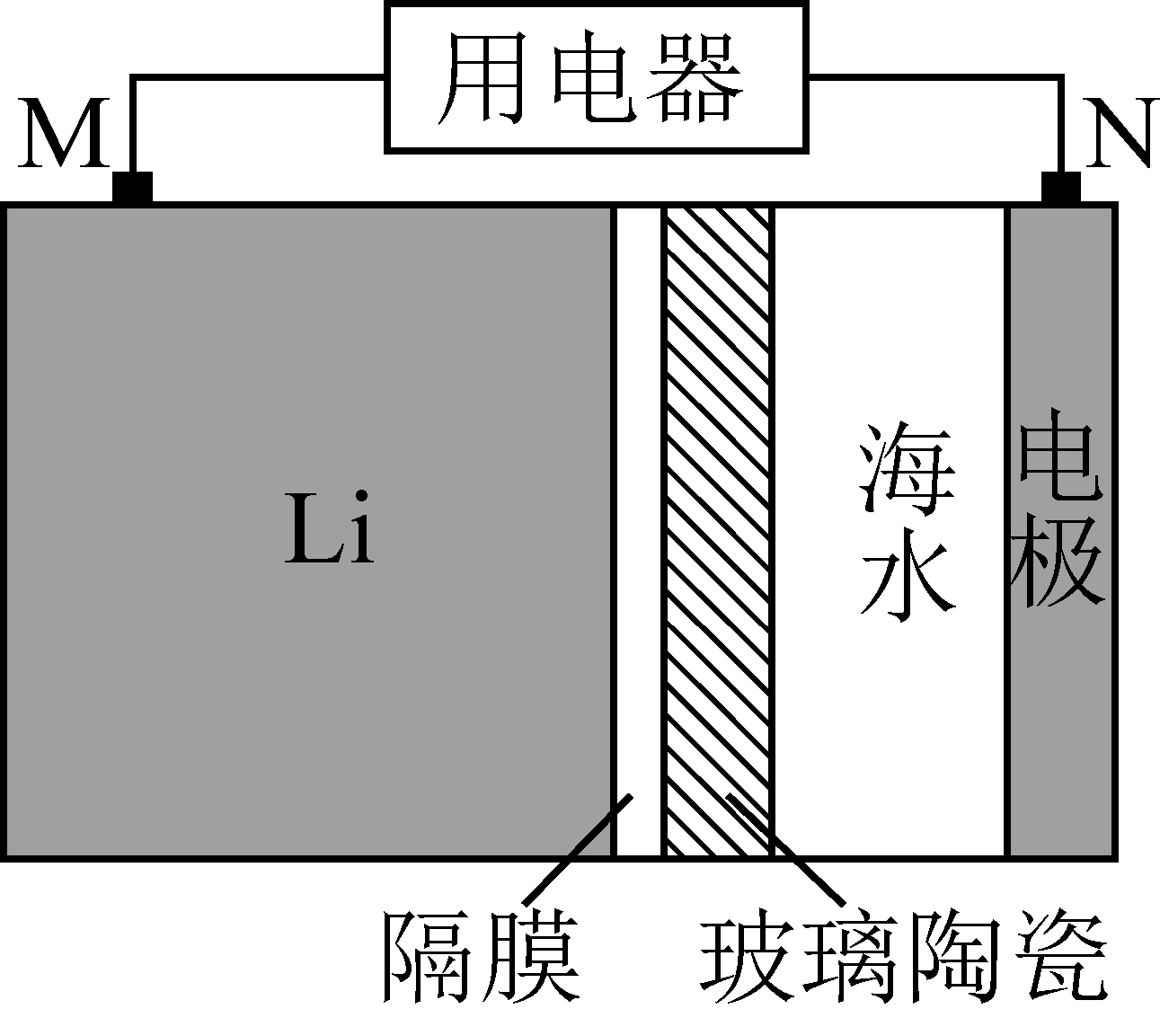 "]由图可知,$\rm M$电极为原电池的负极,锂失去电子发生氧化反应生成锂离子,电极反应式为$\rm Li-e^{-}=Li^{+}$,$\rm N$电极为正极,水分子作用下氧气在正极得到电子发生还原反应生成氢氧根离子,电极反应式为$\rm O_{2}+4e^{-}+2H_{2}O=4OH^{-}$。