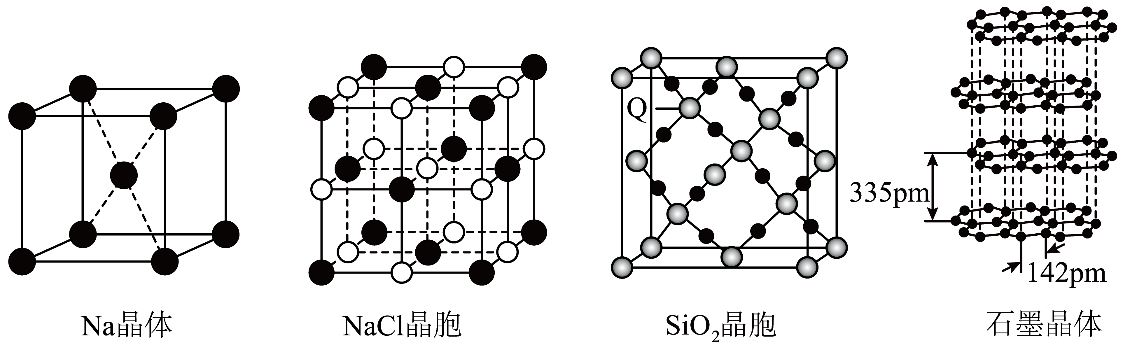 以下为典型晶体的部分结构或晶胞,${{N}_{\text{A}}}$代表阿伏加德罗常数的值。下列说法正确的是$(\qquad)$