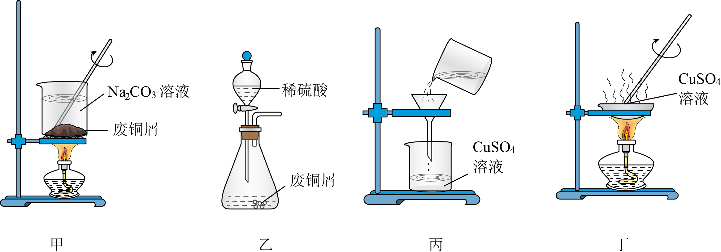 下列由废铜屑制取$\text{CuS}{{\text{O}}_{4}}\cdot 5{{\text{H}}_{2}}\text{O}$的实验原理与装置能达到实验目的的是$(\qquad)$