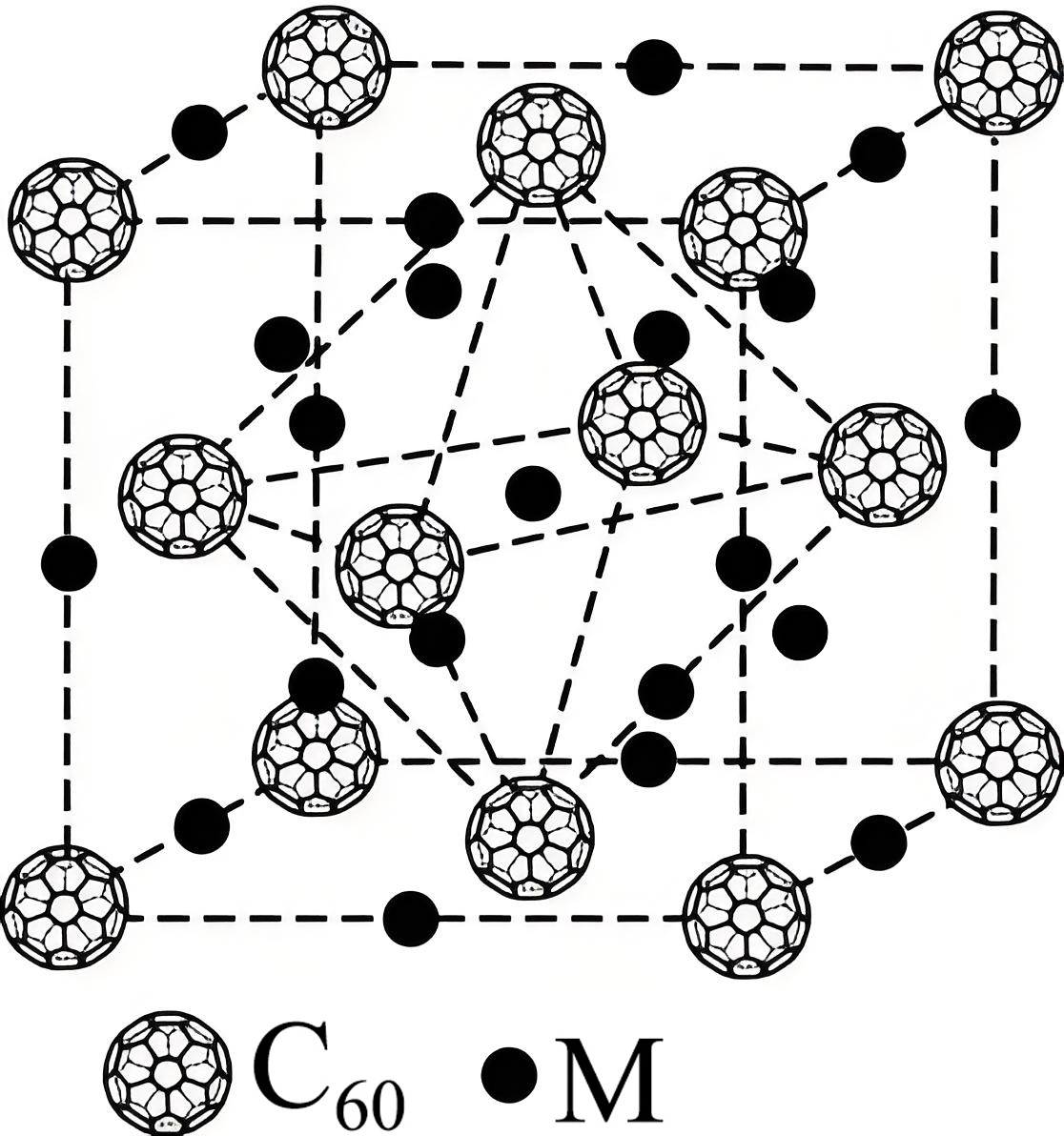 ${{\text{C}}_{60}}$的碱金属$\rm (\text{M}=\text{K}$、$\rm Rb$、$\rm Cs)$衍生物的晶胞结构如图。