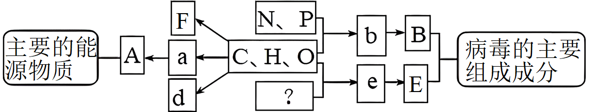 下图表示构成生物体的元素、化合物及其作用,其中$\rm a$、$\rm b$、$\rm d$、$\rm e$代表小分子,$\rm A$、$\rm B$、$\rm E$代表不同的生物大分子。据图回答下列问题: