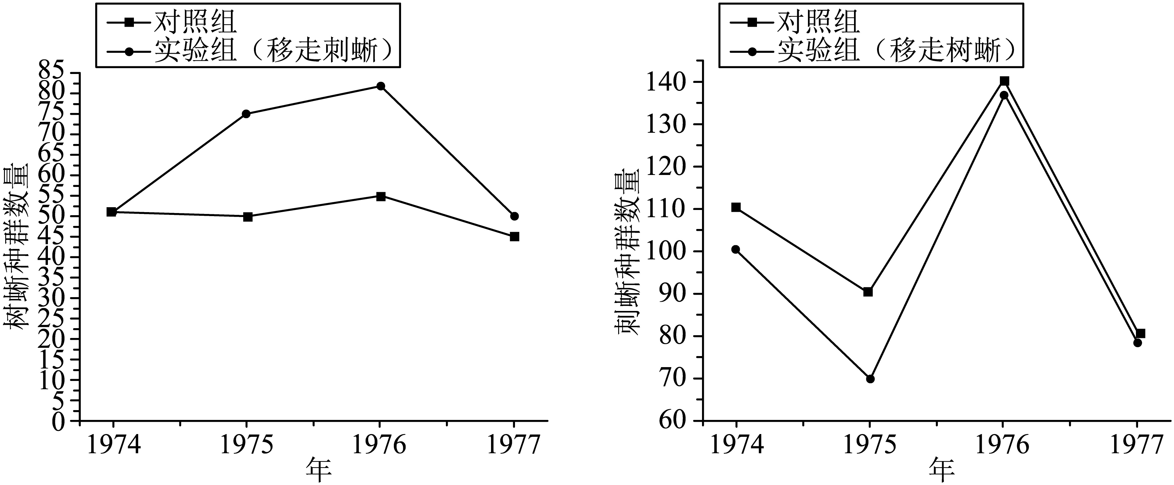 移走刺蜥后树蜥获得了更多的资源、空间等数量增长