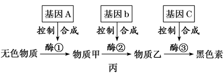 "]]由图丙可以得出,基因可以通过控制酶的合成来控制代谢过程从而控制生物的性状,某一性状也可能受多对基因控制。
