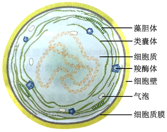 如图为蓝细菌结构示意图,其羧酶体中含有光合作用固定$\rm \text{CO}$的酶。下列相关叙述错误的是$\rm (\qquad)$