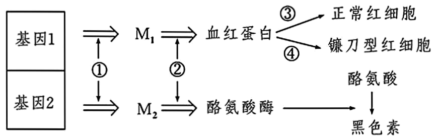 "]分析题图:①是转录过程,②是翻译过程,③是由于基因突变导致合成异常的血红蛋白,从而导致镰刀形细胞的产生。