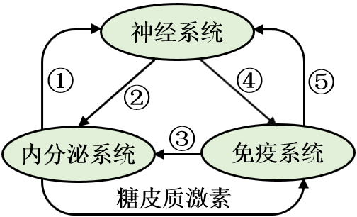 "]据图分析可知,图示为神经$\rm —$体液$\rm —$免疫调节网络,该调节网络的协调配合共同实现了内环境的稳态。图中神经系统分泌神经递质、内分泌系统分泌激素、免疫系统分泌淋巴因子。