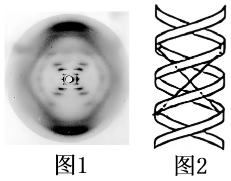 如图$\rm 1$为富兰克林拍摄的$\rm DNA$衍射图谱,图$\rm 2$为基于其研究结果建立的$\rm DNA$双螺旋结构模型简图。下列关于双链$\rm DNA$结构的叙述,正确的是$\rm (\qquad)$