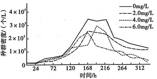 氟乐灵是一种被广泛使用的除草剂,该除草剂不易被降解。为了探究其对水生生物种群的影响,研究人员利用血细胞计数板测定不同浓度氟乐灵下培养液中扇形游仆虫(单细胞真核生物)的种群数量变化,结果如图所示。下列叙述正确的是$\rm (\qquad)$