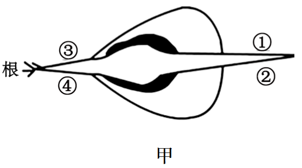 图甲中,玉米种子水平放置后,由于重力作用,生长素在根的 (填“③”或“④”)处分布较多,该处根的生长受到 (填“促进”或“抑制”)。