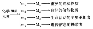 下图是细胞内几种有机物及其功能的关系图。$\rm m_{1}$、$\rm m_{2}$、$\rm m_{3}$、$\rm m_{4}$分别是有机物$\rm M_{1}$、$\rm M_{2}$、$\rm M_{3}$、$\rm M_{4}$的组成成分,下列说法错误的是$\rm (\qquad)$