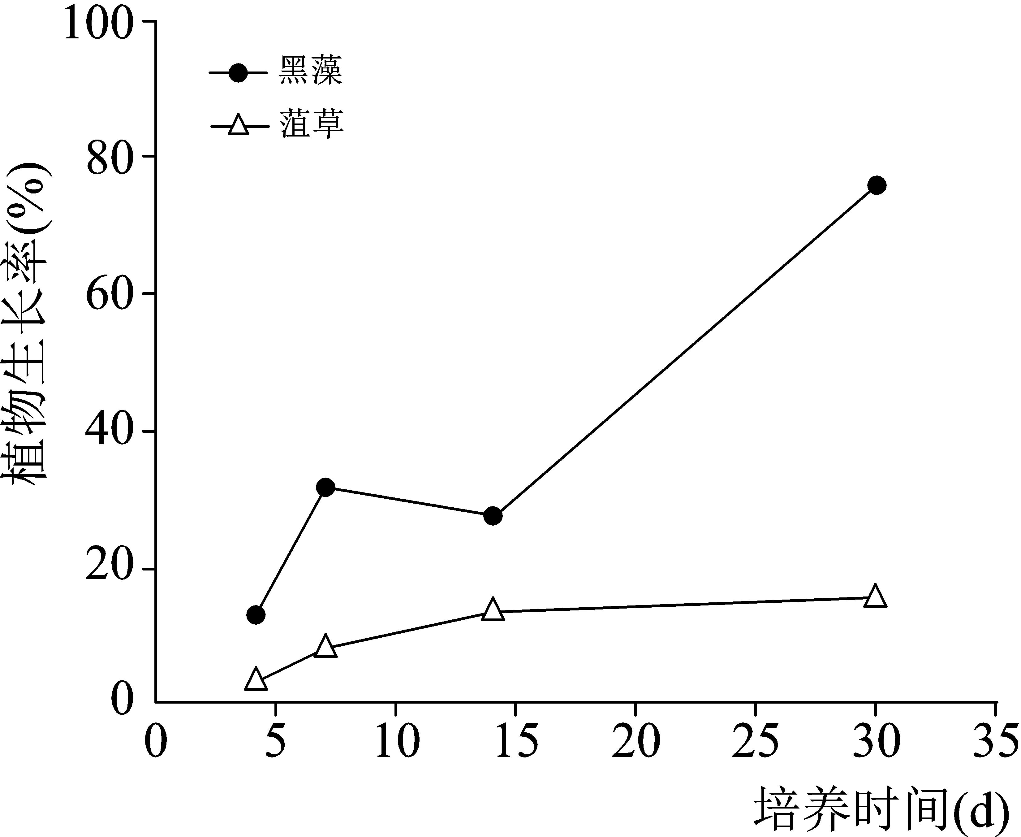研究者从白洋淀取底泥,将黑藻和菹草分别栽种其中,用自来水培养。测定其生长率(图)和不同部位的富集系数和迁移系数(指由根系向地上部分的迁移能力),结果如表。