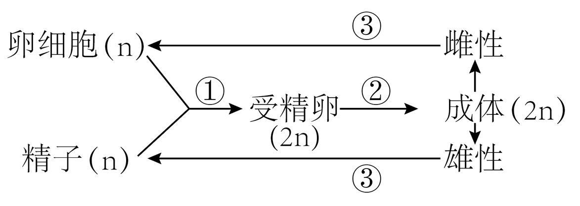 "]①过程为精子和卵细胞的受精作用,②为细胞的增殖、分化形成个体,③为减数分裂形成配子的过程。