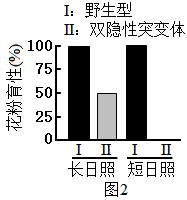 为探索$\rm A$、$\rm B$基因在花粉育性中的作用,科研人员构建了双隐性突变体($\rm aabb$),检测野生型和双隐性突变体在长日照和短日照条件下的花粉育性,结果如图$\rm 2$.结果显示,双隐性突变体的表型是 ,这说明在花粉发育中,$\rm A$、$\rm B$基因的作用关系为 。