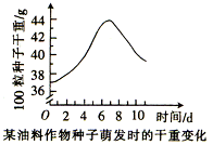 "]根据题意可知,种子始终放在黑暗条件中培养,种子不能进行光合作用,只有呼吸作用;曲线中看出,在前$\rm 7$天种子的干重在增加,这说明脂肪在不断转变成糖类等其他形式的有机物,糖类物质中$\rm O$含量大于脂肪,脂肪转化为糖类、氨基酸等有机物需要添加$\rm O$,添加的$\rm O$可直接来自吸收的水,因此导致种子干重增加的主要元素是氧元素;$\rm 7$天后干重减少是因为有机物在种子萌发过程中氧化分解,产生二氧化碳和水,使有机物的量减少所致。