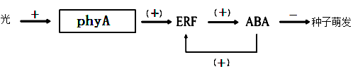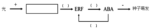 又有研究显示,添加外源$\rm ABA$后,野生型拟南芥植株中$\rm ERF$ $\rm mRNA$的含量显著高于对照组。综合上述实验结果,完善光、植物激素调控种子萌发的调控机制模式图 (请在答题纸相应位置用文字和“$\rm +$”或“$\rm -$”作答,其中“$\rm +$”表示促进作用,“$\rm -$”表示抑制作用。)