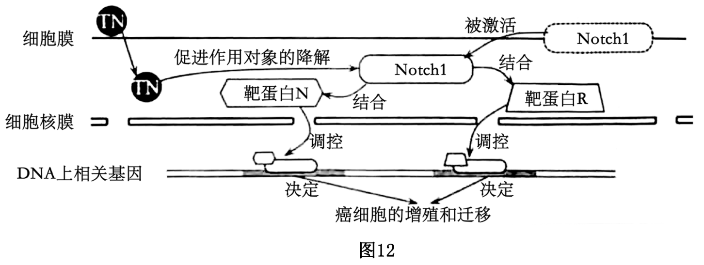 ","据图分析,$\\rm TN$ 可以通过抑制$\\rm Notch1$ 蛋白与靶蛋白$\\rm N$和靶蛋白 $\\rm R$ 的结合起作用