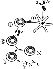 如图是人体对某病原体的部分免疫过程示意图,图中序号代表细胞,下列叙述正确的是$\rm (\qquad)$