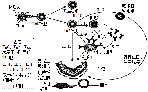 物质$\\rm A$是引起过敏反应的过敏原,物质$\\rm B$可能是能引起血管通透性降低的组胺