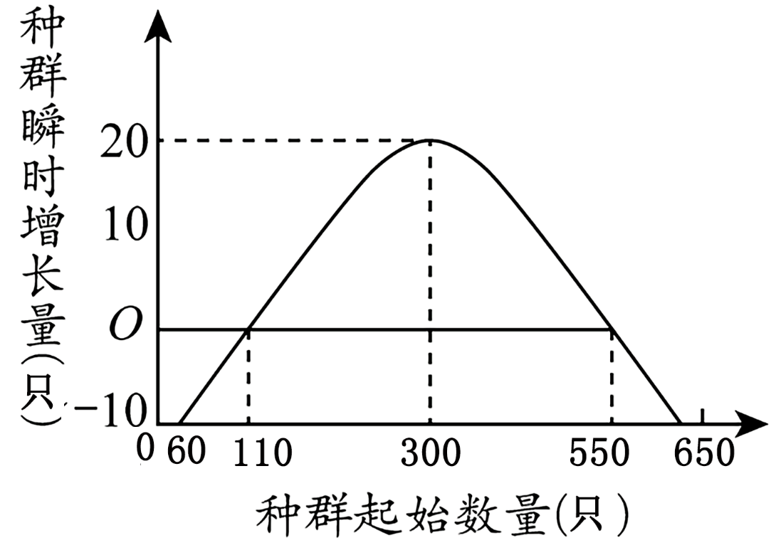 $\rm C$、种群的环境容纳量称为$\rm K$值,当种群数量达到$\rm K$值时,种群数量相对稳定,此时种群瞬时增长量为$\rm 0$。由图可知,当种群数量大于$\rm 550$个时,种群数量下降,所以$\rm 550$个为$\rm K$值,$\rm C$错误;