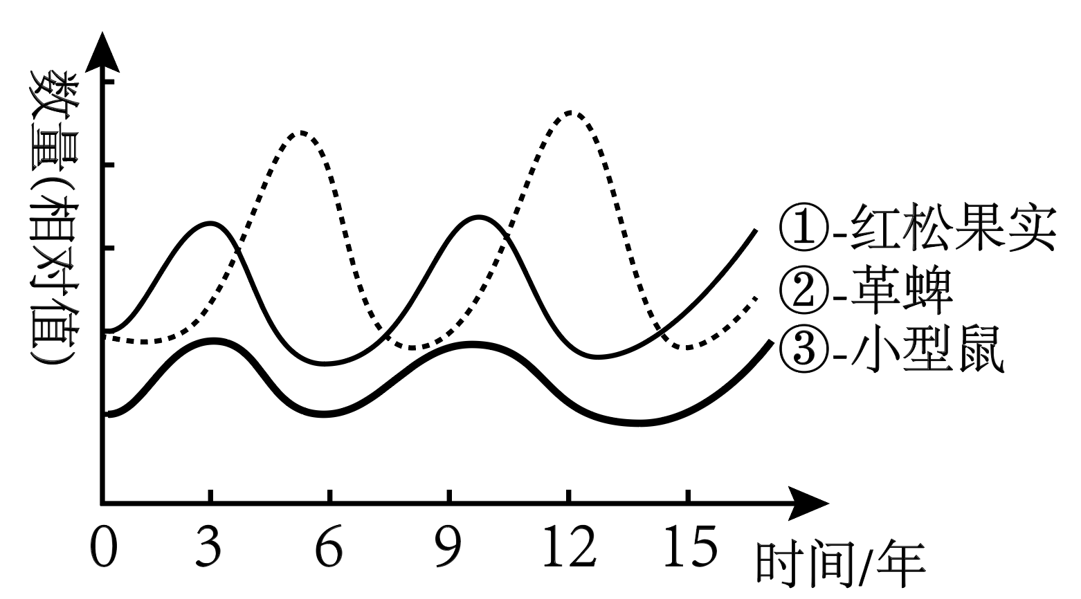 某林区的红松果实、某种小型鼠$\rm ($以红松果实等为食$\rm )$和革蜱的数量变化具有如图所示的周期性波动特征。林区居民因革蜱叮咬而易患森林脑炎。据此分析,下列叙述正确的是$\rm (\qquad)$