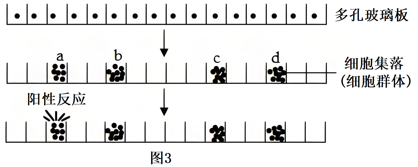 如图$\rm 2$,经过①$\rm -$②$\rm -$③$\rm -$④后得到的融合细胞再经过⑤筛选。筛选过程如图$\rm 3$所示,往往取一定稀释倍数的杂交瘤细胞悬液加入到多孔玻璃板中,若每个孔中有多个细胞,阳性反应孔中的细胞还需多次稀释培养并检测,目的是 。