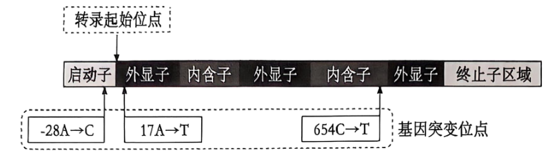 $\rm 654C→T$突变, $\rm ($会$\rm /$不会$\rm )$增加该基因嘌呤碱基总数量。$\rm -28A→C$突变,会导致$\rm P$型$\rm ATP$酶的表达异常,其原因是 。