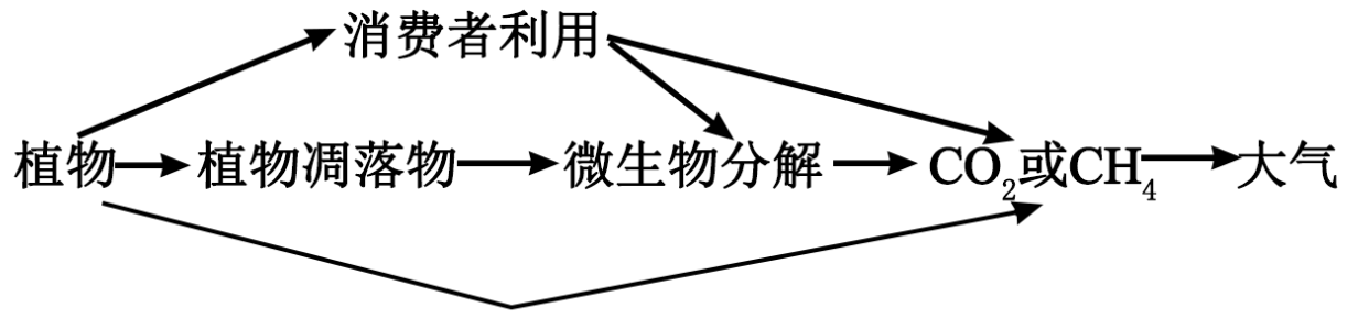 "]]图中碳循环示意图中包含了生产者、消费者、分解者和碳库,其中缺少的环节是植物的光合作用,即大气中二氧化碳指向植物的箭头,另一方面化石燃料的燃烧过程也未涉及,但该题目中应该主要是缺少二氧化碳指向植物的箭头,即光合作用这一环节。