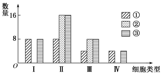 "]据图分析并结合减数分裂过程中染色体、染色单体与$\rm DNA$的数量变化关系可知,图中①为染色体,②为染色单体,③为$\rm DNA$。Ⅰ中无染色单体,染色体:$\rm DNA=1:1$,且染色体数目与体细胞相等,应为精原细胞或减数第二次分裂前期、中期细胞;Ⅱ中染色体:染色单体:$\rm DNA=1:2:2$,且染色体数与体细胞相同,处于减数第一次分裂;Ⅲ中染色体:染色单体:$\rm DNA=1:2:2$,且染色体数是体细胞的一半,处于减数第二次分裂前期和中期;Ⅳ中无染色单体,染色体:$\rm DNA=1:1$,且染色体数是体细胞的一半,应为减数分裂形成的配子。