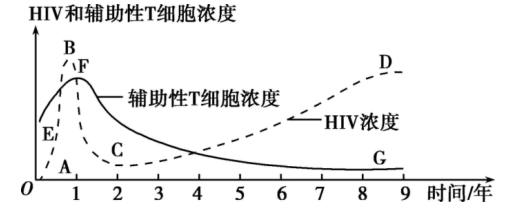 ","曲线$\\rm AB$段,$\\rm HIV$直接利用辅助性$\\rm T$细胞内的葡萄糖作为能源物质