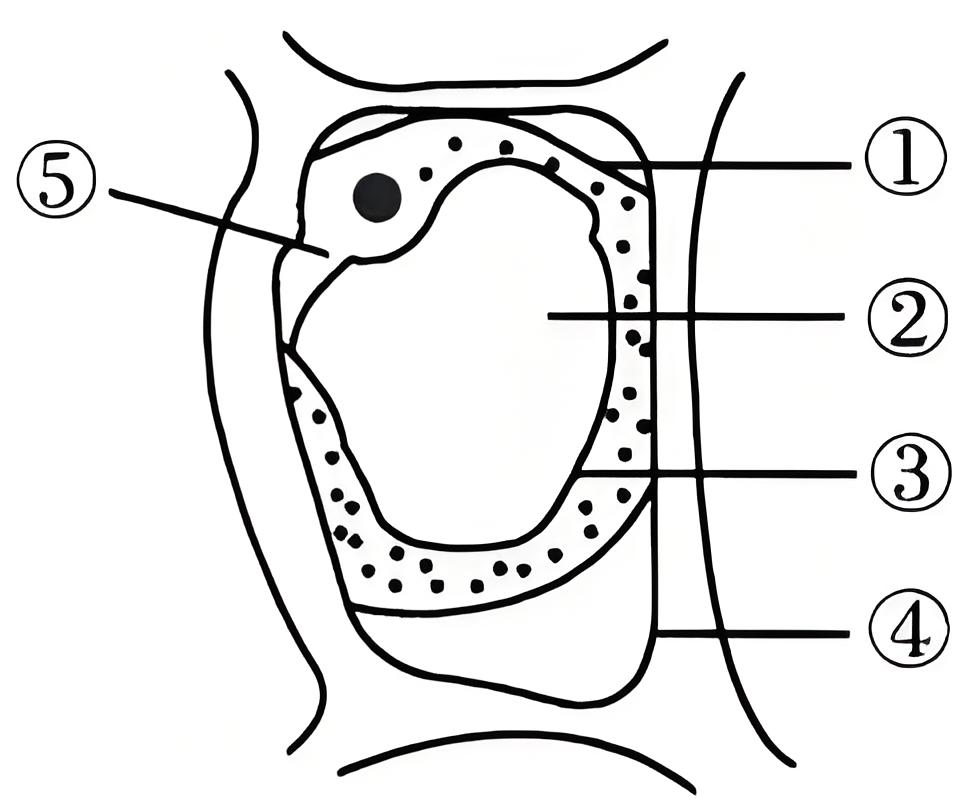 将紫色洋葱鳞片叶外表皮置于一定浓度的葡萄糖溶液中,某一时刻观察到的图像如图。下列说法错误的是$\rm (\qquad)$