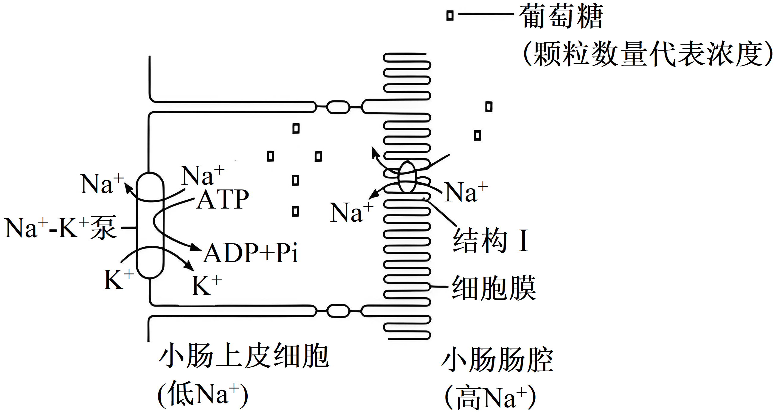 "]$\rm AB$、图中$\rm Na^{+}$进细胞是顺浓度梯度运输,该过程释放能量用于葡萄糖逆浓度进入细胞,所以葡萄糖进入该细胞的方式是主动运输,$\rm AB$错误;